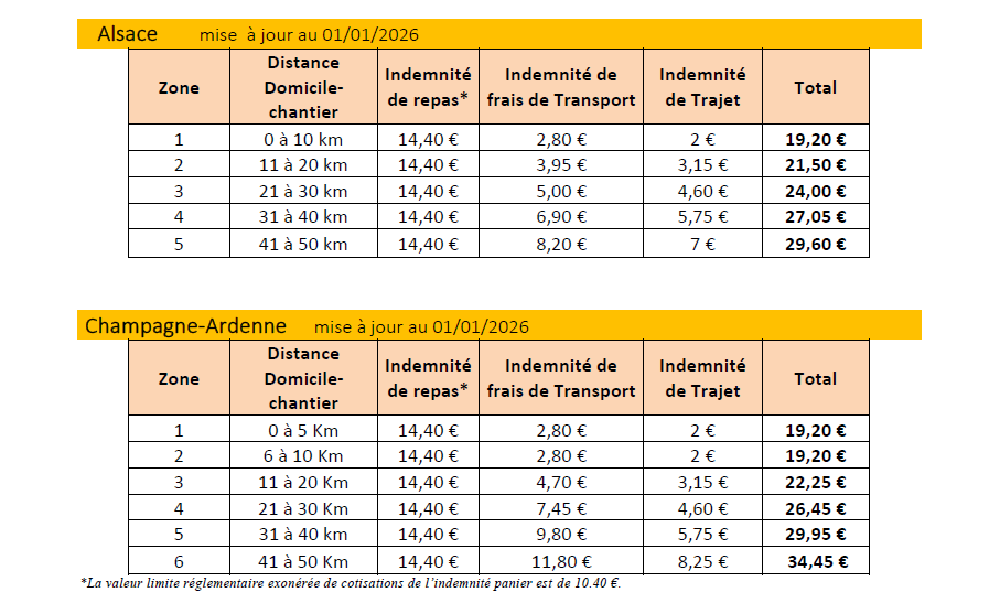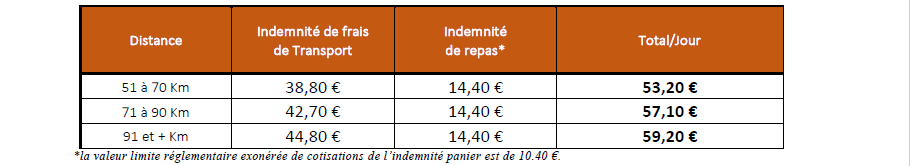 *La valeur limite réglementaire exonérée de cotisations de l’indemnité panier est de 10.40 €.